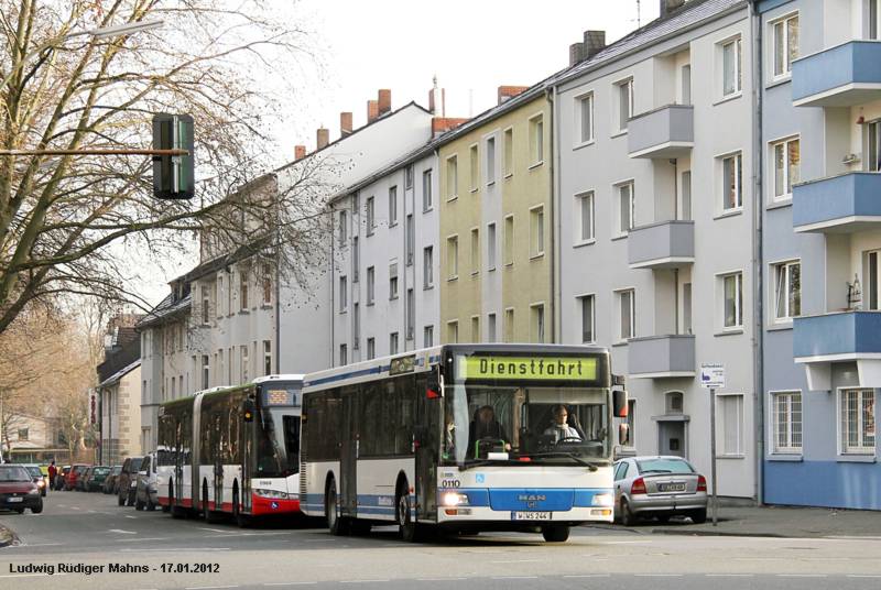 ![]() Der Wuppertaler Bus 0110, einer der Busse mit einer Fahrschulvorrichtung wurde in Gelsenkirchen gesichtet. Er ist hier an der Kreuzung Wanner Straße / Hohenzollernstraße fotografiert worden. Offensichtlich war es die Abschlussprüfung angehender Fachkräften im Fahrbetrieb, die bei der IHK Bochum absolviert werden muss, da die Berufsschule wohl in Hattingen liegt. A last exam on a bus. Here with a driving school bus in Gelsenkirchen. It was the practical test. Foto: © Ludwig Rüdiger Mahns |