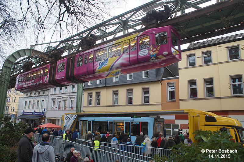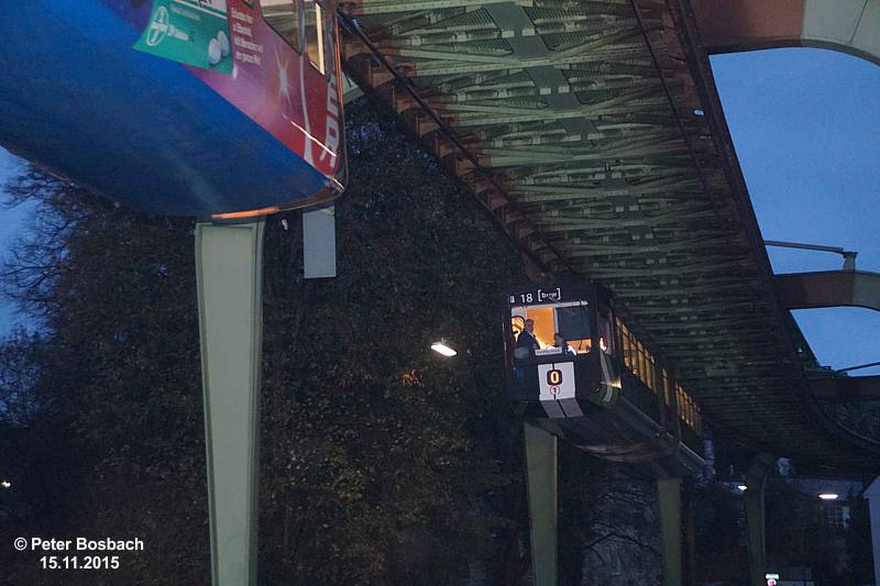 ![]() Schwebebahn Gtw 2 der kurz vor seiner Fristablauf steht, wurde als Verstärkerzug eingesetzt, weil so viele Menschenunterwegs waren. Wahrscheinlich bekommt er eine einfache Hauptuntersuchung, die ihn noch einmal für die nächsten 100.000 km fit machen wird,. |