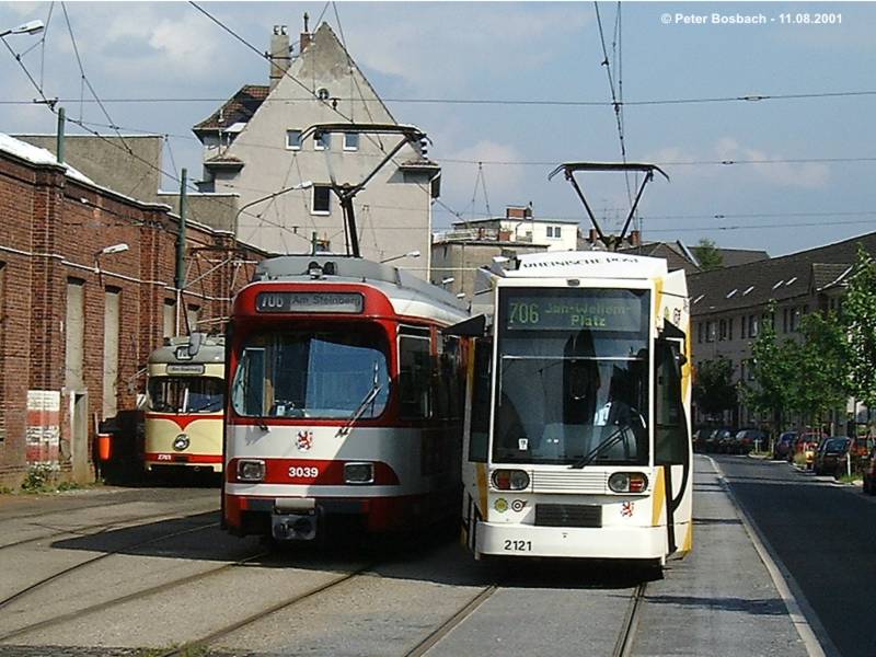 Vor dem Depot Steinberg waren drei Züge abgestellt. Hier Tw 2329 und Bw 1689. In front of Depot Steinberg where waiting three Trams. Her it is Tram 2329 and Trailor 1689. |